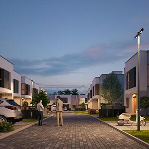 Prezentowany Etap II projektu to zespół 21 domów jednorodzinnych zgrupowanych w czterech szeregach usytuowanych w spójnej architektonicznie przestrzeni, połączony komunikacyjnie z Etapem I, który składa się z 16 apartamentów, w 4 oddzielnych budynkach, zamkniętych w wydzielonej funkcjonalnie przestrzeni.
