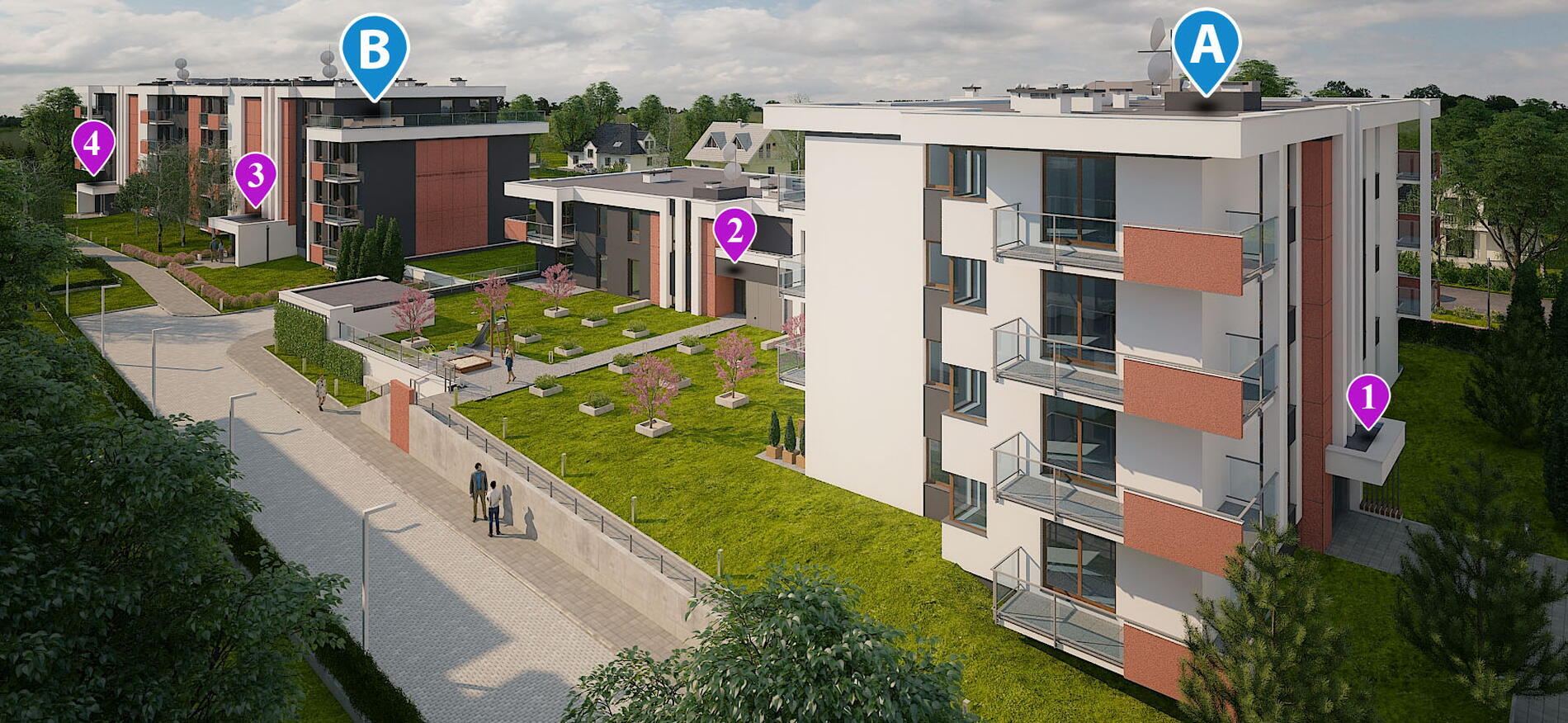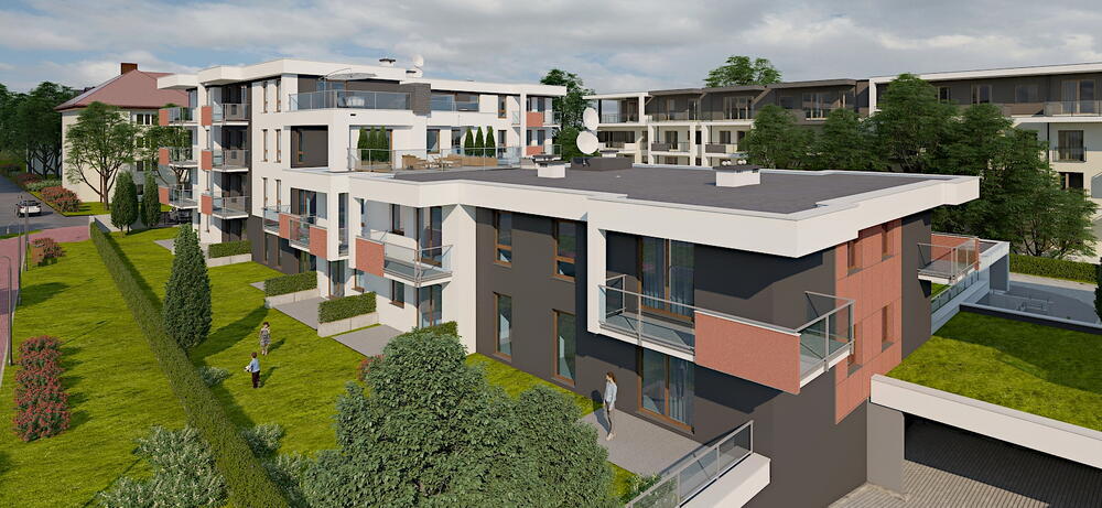 W ramach inwestycji powstaje nowoczesny budynek wielorodzinny z wydzielonymi architektonicznie segmentami A i B do których prowadzą 4 klatki schodowe. Oferujemy 76 lokali mieszkalnych (w tym część apartamentów o powierzchni ponad 70 m2) wyposażonych w funkcjonalne balkony lub przestronne tarasy i komórkami lokatorskimi w większości zlokalizowanymi na kondygnacji mieszkania. Garaż podziemny to 88 miejsc postojowych, które zapewnią mieszkańcom wygodne parkowanie i możliwość łatwego przemieszczenia się windą na piętro swojego mieszkania. Każdy lokal zapewnione ma przynajmniej jedno miejsce postojowe, a dla części apartamentów możliwy jest zakup dodatkowego miejsca postojowego.